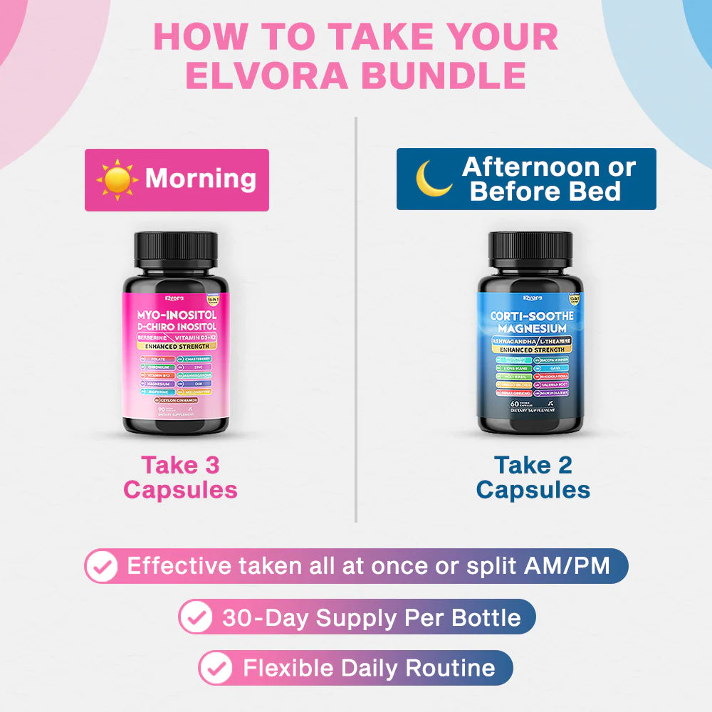 La combinación deCorti-Soothe + Myo-Inositol actúa directamente sobre las hormonas del estrés, mejora la sensibilidad hormonal y ayuda a disminuir los picos de ansiedad, antojos y agotamiento diario.